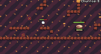 This is an adventure game made on Godot about a ghost that collects churros and tries to defeat the evil Burger King who wants to take over the sweetness of the world.